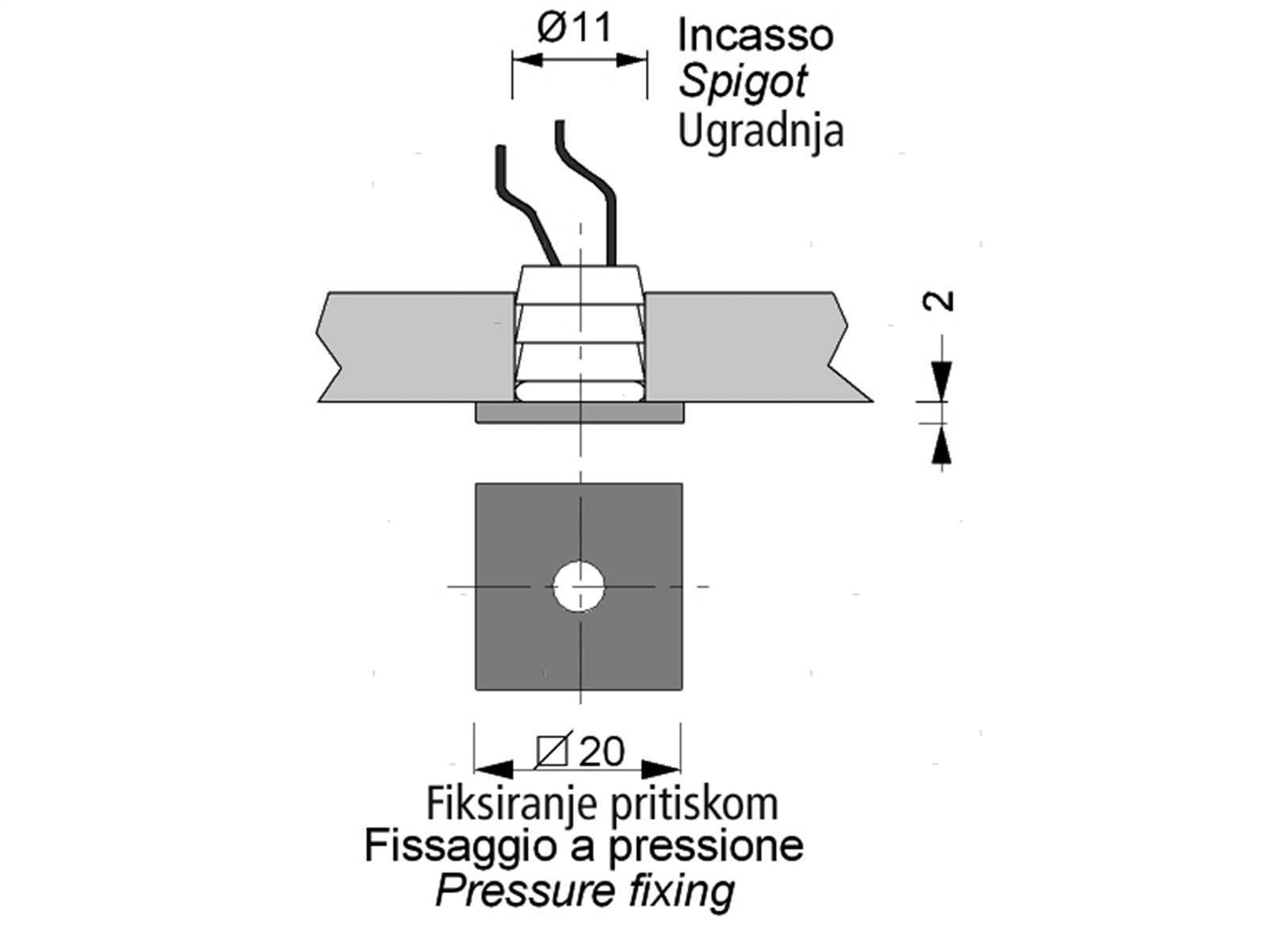 Luce LED a incasso impermeabile (IP67) per interni ed esterni. Corpo in Ottone Cromato, viti in Acciaio Inox. Voltaggio universale 12/24V.