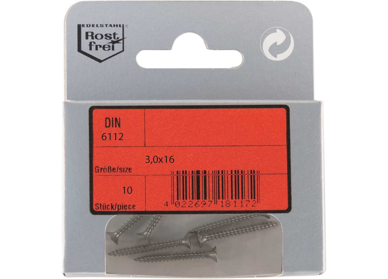 Viti per legno e pannelli truciolari con testa piana svasata DIN 6112 in Acciaio Inox A4.In comodi ed eleganti blister.