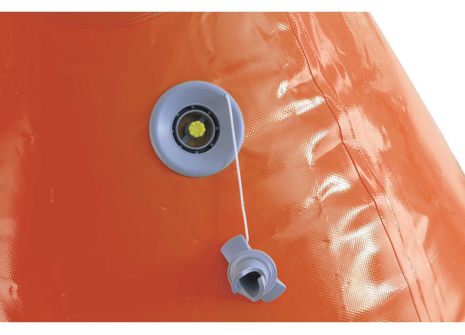 Boe da regata gonfiabili in Poliestere 1000D spalmato PVC molto resistente e robusto. Dotate di valvola di gonfiaggio e sgonfiaggio veloce e di 5 anelli in Acciaio Inox alla base che garantiscono un fissaggio al piombo sicuro e resistente a qualunque condizione meteo. Non necessitano di alcuna rete data la robustezza del materiale. Complete di maniglie per un facile trasporto e di 3 tasche in PVC per l'esposizione di eventuali messaggi pubblicitari.