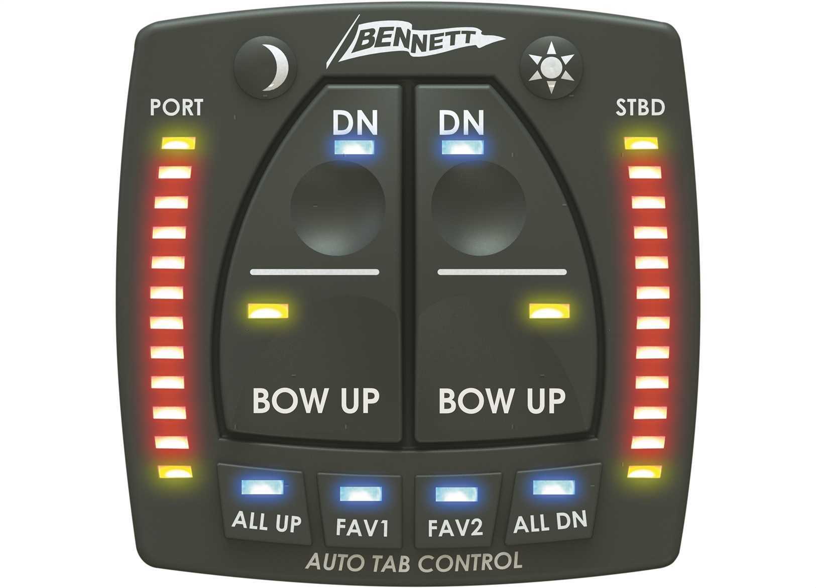 Sistema controllo assetto Bennett all-in-one AutoTrim Pro composto da pannello comando indicatore LED, centralina di controllo con auto tab retractor (ATR) e cavi di collegamento. Alimentazione universale 12/24V, si può installare sia su sistemi idraulici che su quelli tipo Bolt elettrici. La centralina rileva segnali in tempo reale e invia il comando ai flap, correggendo l'assetto in relazione alla scelta impostata, alla velocità, oppure alle condizioni del mare. L'ATR fa rientrare automaticamente i flaps quando si disinserisce la chiave di accensione.