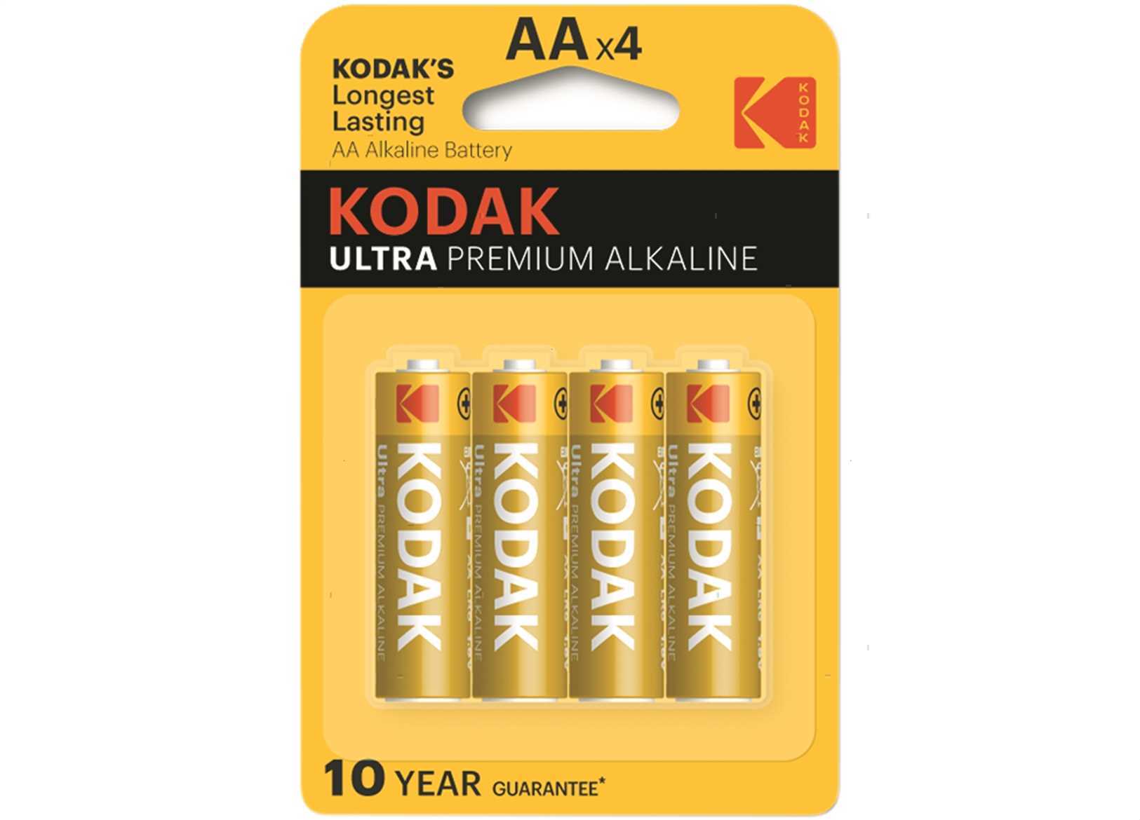 Batterie Kodak Ultra Premium Alkaline AA (Stilo) in confezione blister da 4 pezzi.?Prestazioni e durata eccezionale con 10 anni di garanzia di stoccaggio.