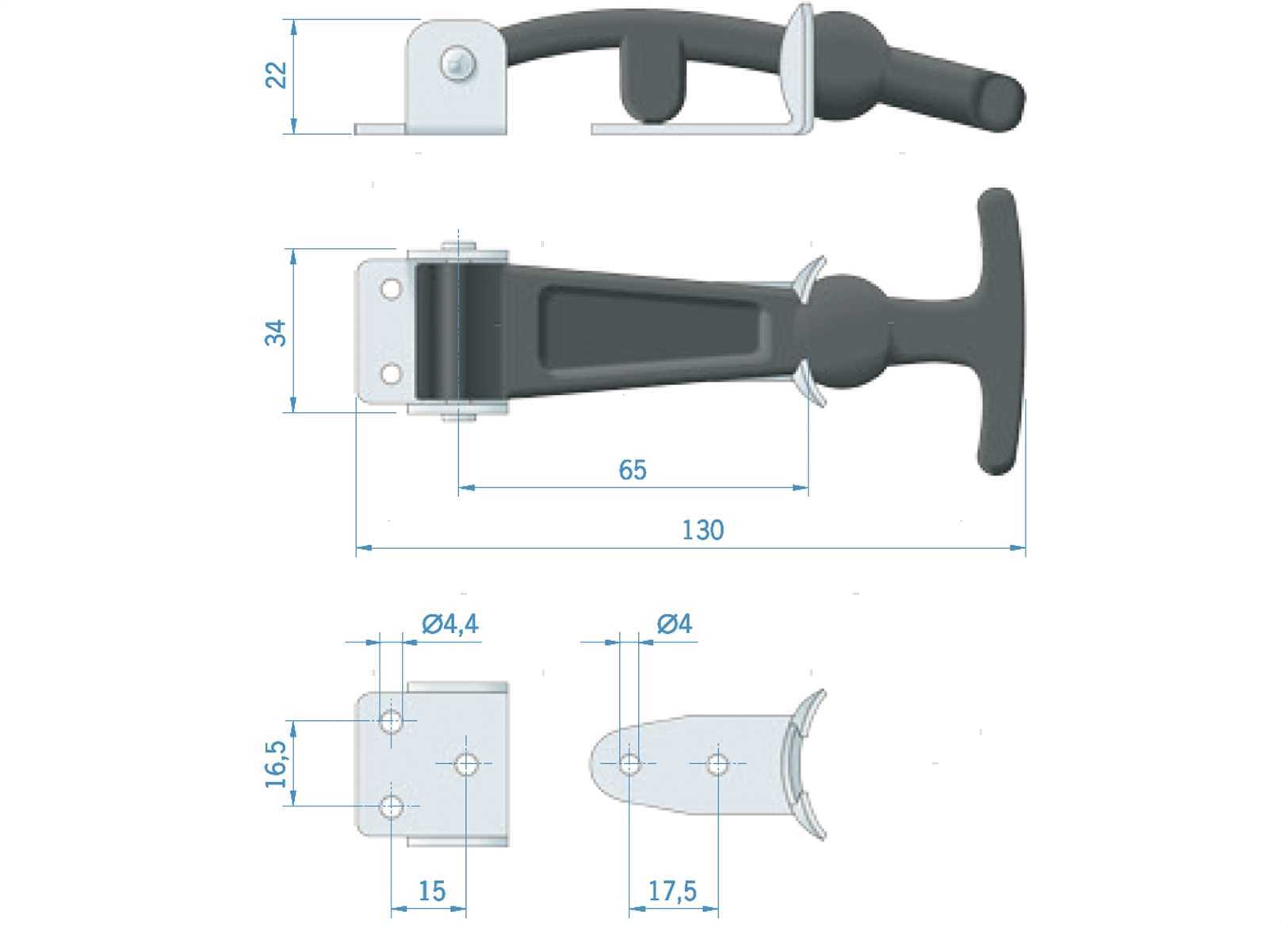 Chiusura a leva Roca in elastomero termoplastico con componenti antigelo e base di attacco in Acciaio Inox. Ideale per portelli, cassoni e ghiacciaie.
