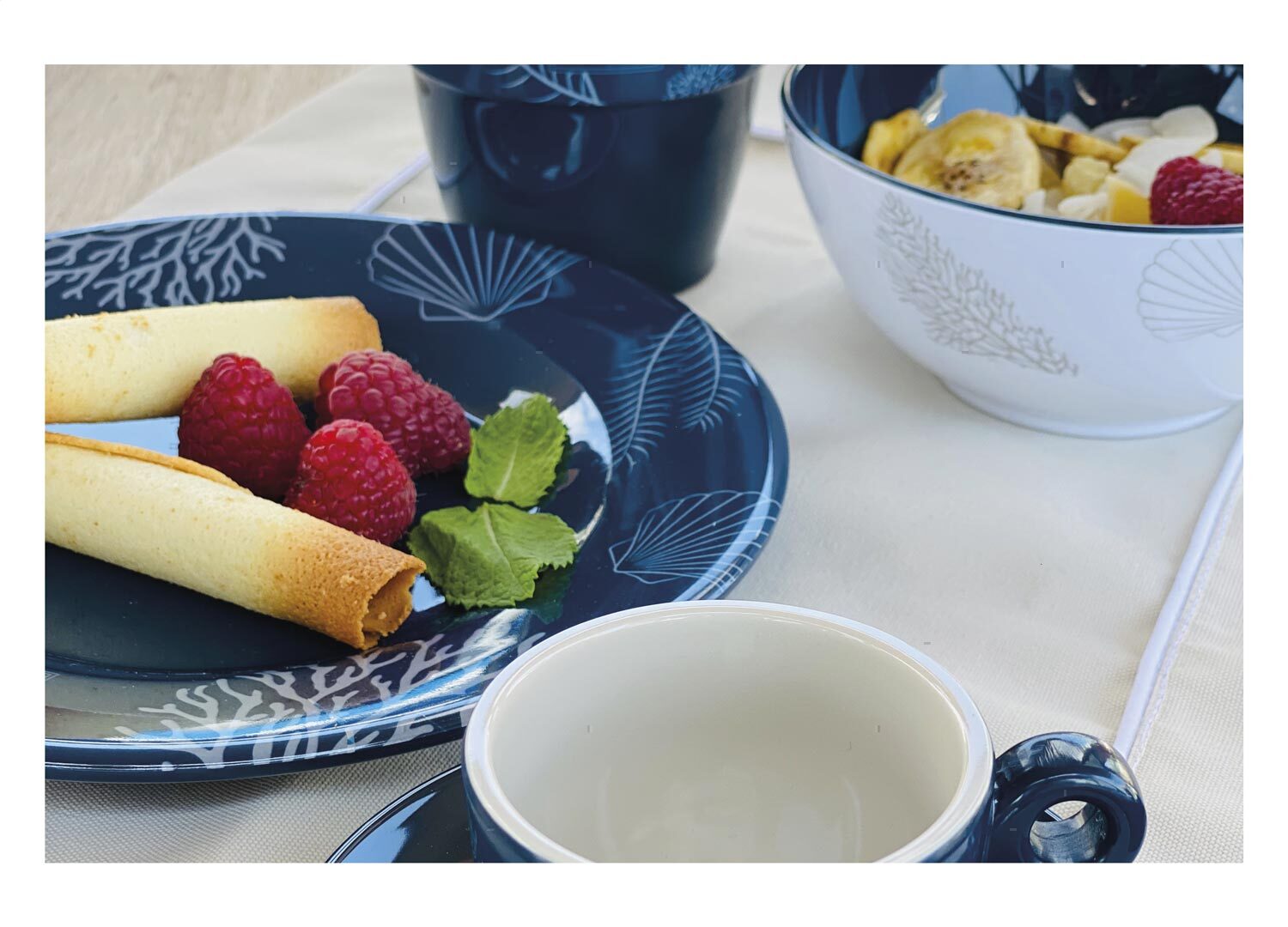 Piatto da dessert con decoro Living e base antiscivolo in confezione da 6 pezzi. In Melamina garantita 100% per uso alimentare. Lavabile in lavastoviglie, infrangibile e anti-macchia.