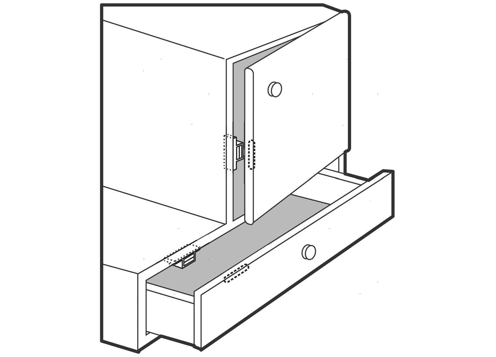 Ferma porte e portelli magnetico in plastica bianca con rondella. Composto da due parti che si montano separatamente sulla parte fissa e sulla parte mobile. Venduto in coppia.