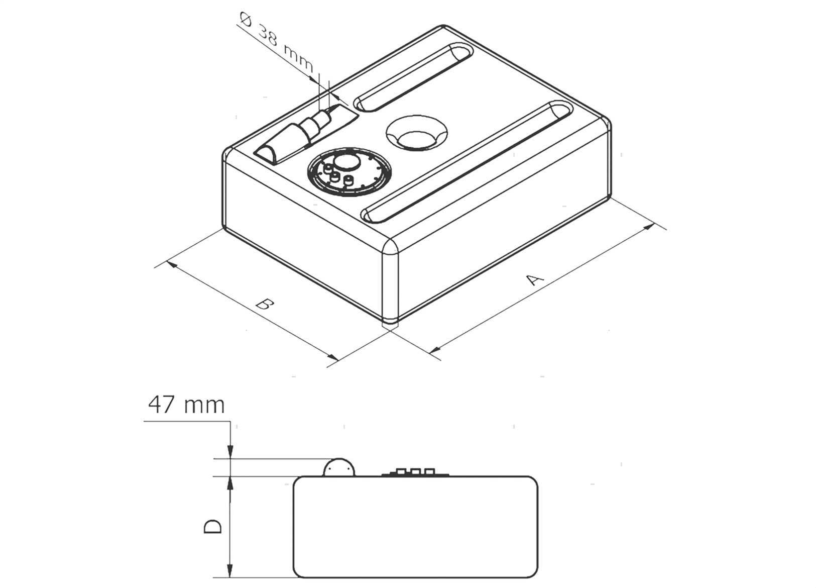 Serbatoio rettangolare in Polietilene reticolato con raccordi prestampati per primi impianti OEM. Completo di boccaporto con sfiato da 17/19 mm, uscita con pescante da 12 mm e tappo filettato. Certificazione RINa CE-ISO21487.