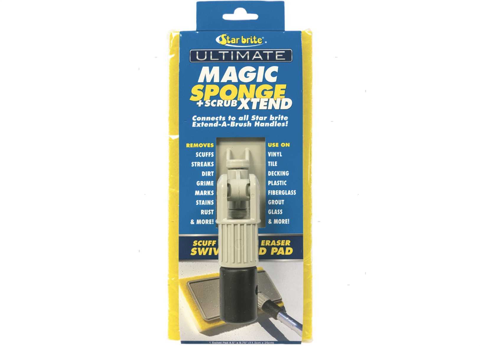 Spugna Magic Sponge su pattella snodata che permette di raggiungere velocemente tutte le superfici e gli angoli più nascosti. Costruita con elementi nano abrasivi, rimuove macchie, polvere e graffi ed è ideale per superfici in gelcoat, vetroresina, vinile e plastica. Si adatta a tutti i manici Star Brite.
