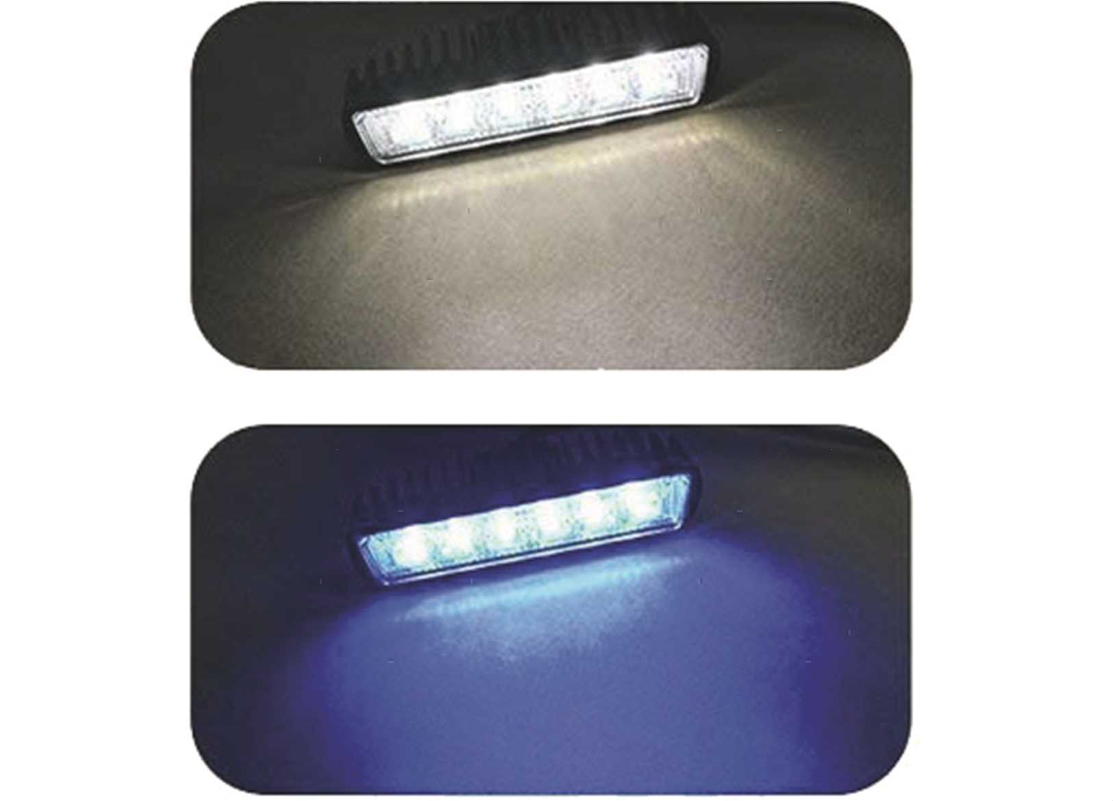 Faro da lavoro impermeabile IP68 Dual Color Power-LED con cassa in lega di Alluminio bianca, staffa in Acciaio Inox e lenti in Policarbonato. Alimentazione multivolt 9-32V. Doppia luce selezionabile grazie allo switch interno a seconda delle necessità in coperta: luce bianca oppure luce blu.